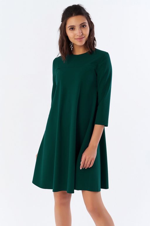 Особенности: Платье А-образного силуэта. Горловина округлой формы, рукав прилегающий, втачной. По переду и спинке выполнена фигурная кокетка.