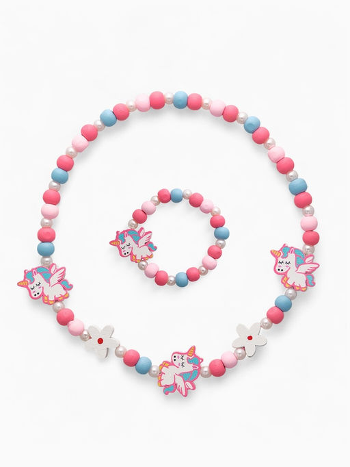 Цена за 2 шт. Набор детских украшений Выбражулька «Единорожки милые», 2 предмета: бусы, браслет, розовый