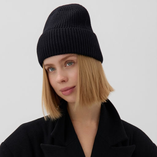 • Шапка женская MINAKU с отворотом, размер 54-56, цвет черный