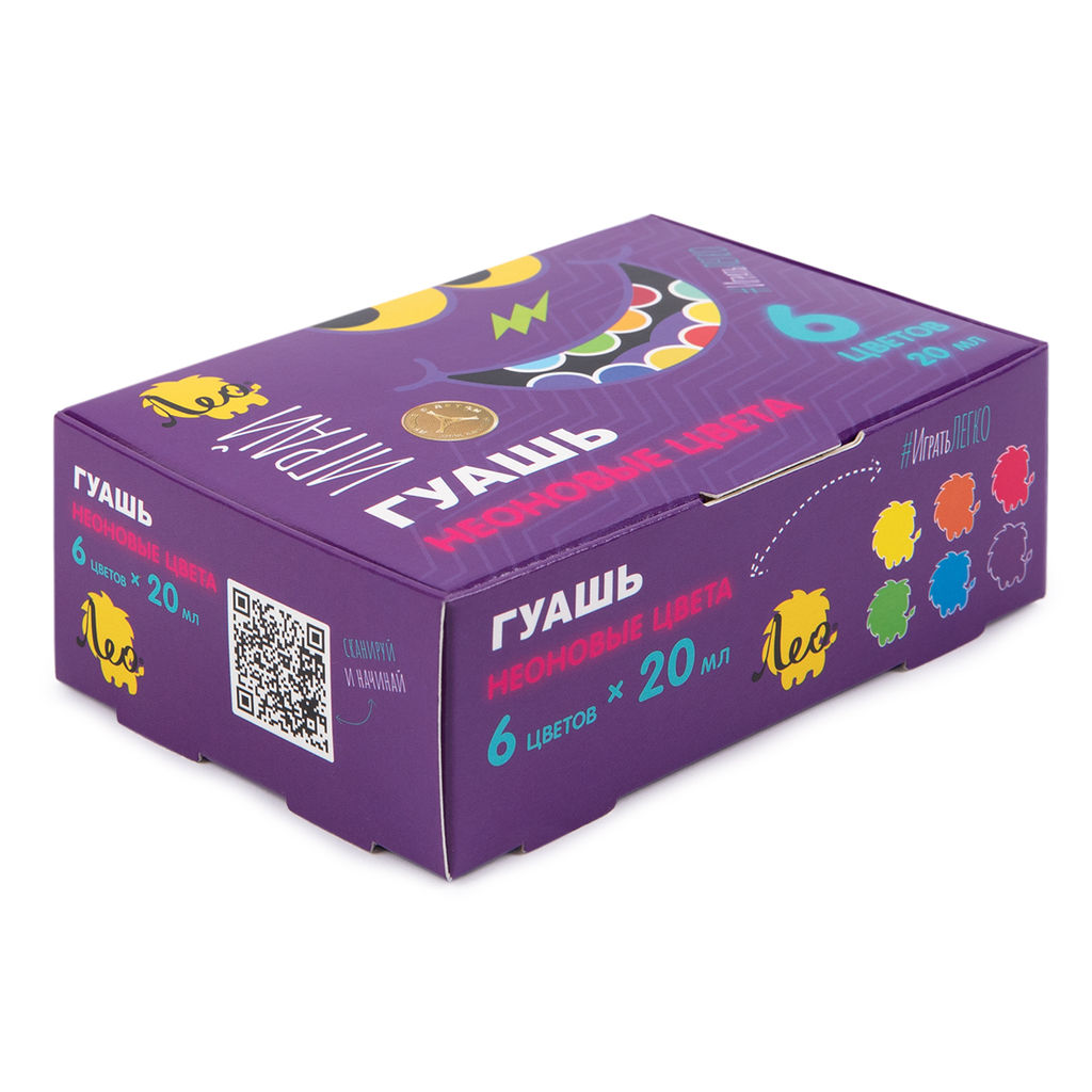 Описание товара Описание Гуашь классическая ТМ Лео серии Играй производится на основе только качественных компонентов и пигментов. Традиционная рецептура обеспечивает сохранение отличительных качеств этих красок - густоты, укрывистости и матовости. Предназначена для детского творчества. Идеально подходит для детей школьного и дошкольного возраста, станет незаменимым помощником на занятиях в кружках, детских садах, дома, школе. Гуашь отлично наносится на бумагу, картон, деревянную поверхность. Гуашь классическая ТМ Лео серии Играй обладает следующими потребительскими свойствами: - не токсична, безопасна для детей, - имеет плотную текстуру, высокую светостойкость и укрывистость, - хорошо размывается водой, - равномерно наносится на поверхность, - быстро сохнет, - чистые, насыщенные цвета, - после высыхания не меняет цвета, приобретая бархатистый эффект, - легко смывается с рук и отстирывается с одежды. Гуашь неоновых цветов придает картинам более яркий и выразительный вид, имеет флуоресцентный эффект. Работы, выполненные флуоресцентными красками, светятся под лучами ультрафиолета. Для упаковки гуаши используются специальные герметичные баночки с контролем вскрытия, что защищает краски от преждевременного высыхания и вытекания из баночки. Объем баночки 20 мл. Количество цветов: 6 Состав набора: желтый, оранжевый, розовый, синий, зеленый, фиолетовый. ОбязательныйОбязательныйОбязательныйОбязательныйОбязательныйДобровольный
