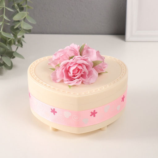 Шкатулка музыкальная механическая Нежные розы, пластик, молочная, 12?13.5?10.5 см