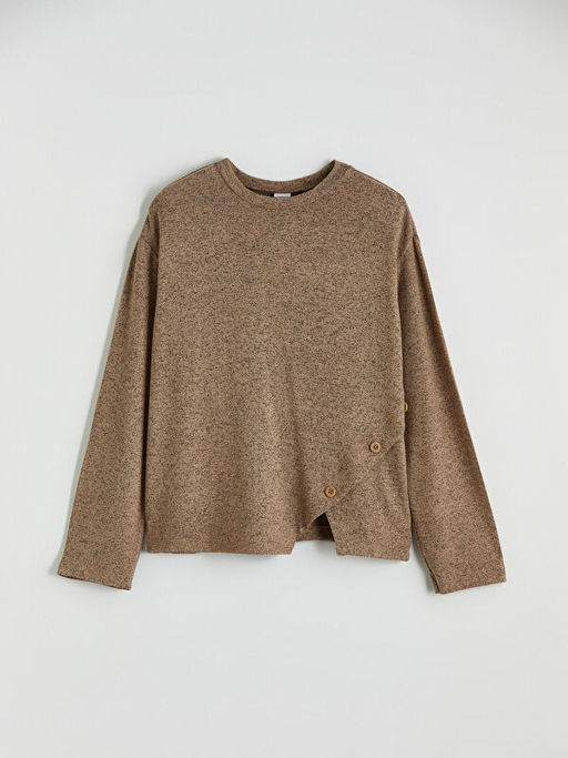 • Bisiklet Yaka K?z ?ocuk D??me Detayl? Ti??rt
