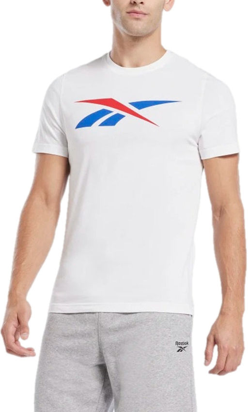 Носите свою спортивную гордость на рукаве. Эта мужская футболка с графическим принтом Reebok демонстрирует уважение к спорту на виду у всех. Она имеет узкую посадку для стильного внешнего вида. Мягкий хлопковый трикотаж удобен для повседневного ношения. Наша продукция из хлопка полностью получена за счет устойчивого выращивания хлопка и изготовлена ​​из не менее чем 50% лучшего хлопка.