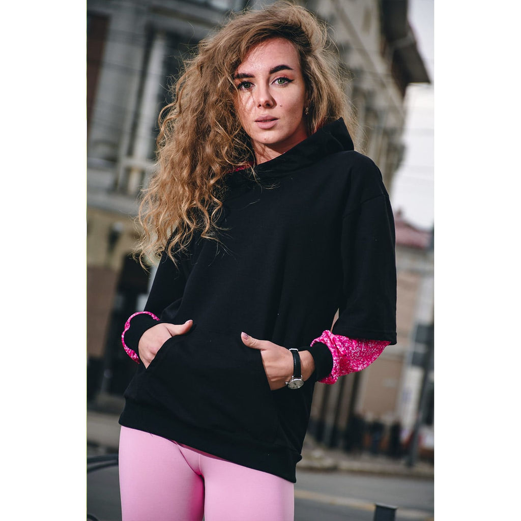 Необычная и стильная толстовка из футера с яркими принтоваными рукавами. На спине маленькая нашивка - яблоко, низ изделия и рукава обработаны манжетом из рибаны. Подойдет для прогулок в прохладную погоду.