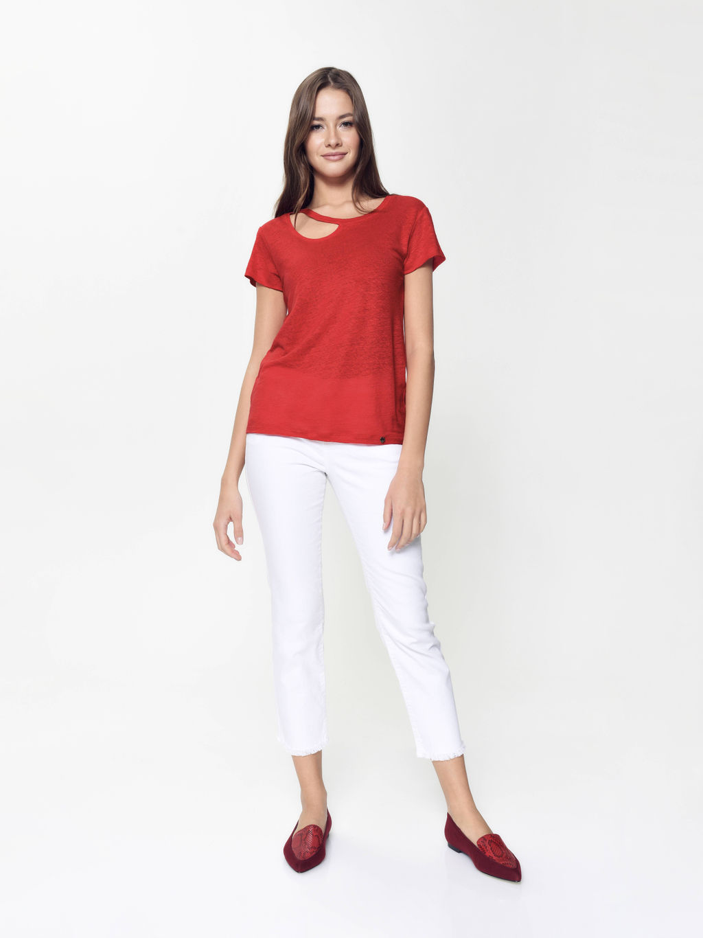 CONTE Льняная футболка с вырезом "капелька" LD 919 sugar coral
