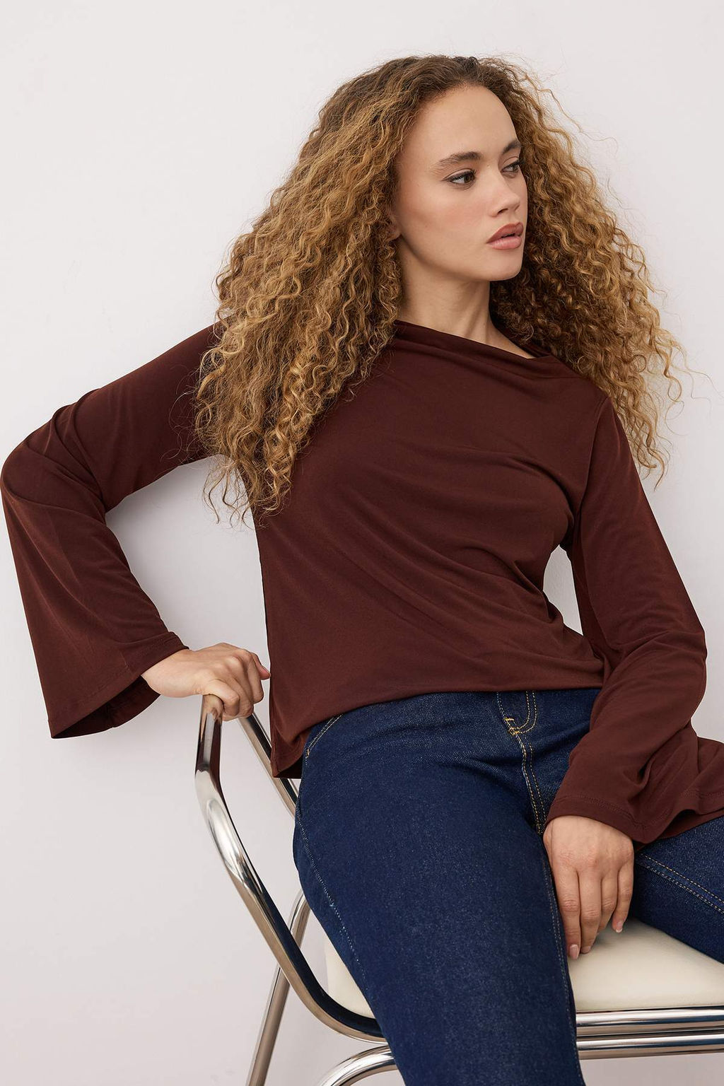Kahverengi Relaxed/Rahat Kal?p Ispanyol Kol Esnek Orme Bluz TWOAW25BZ00203