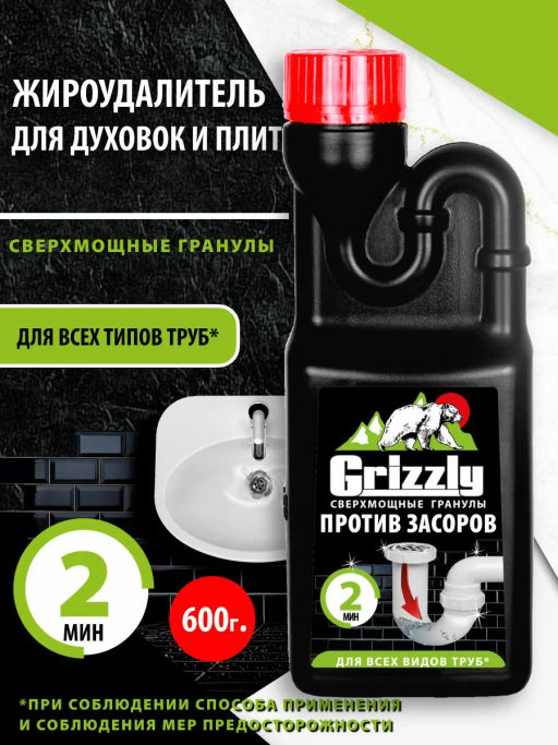 Сверхмощное гранулированное средство GRIZZLY устраняет засоры лучше, чем традиционные жидкие средства. Гранулы действуют мгновенно, устраняют жиросодержащие засоры, отложения, неприятные запахи и растворяют волосы. Рекомендуется использовать средство не только для устранения засоров, но и для профилактики раз в месяц.