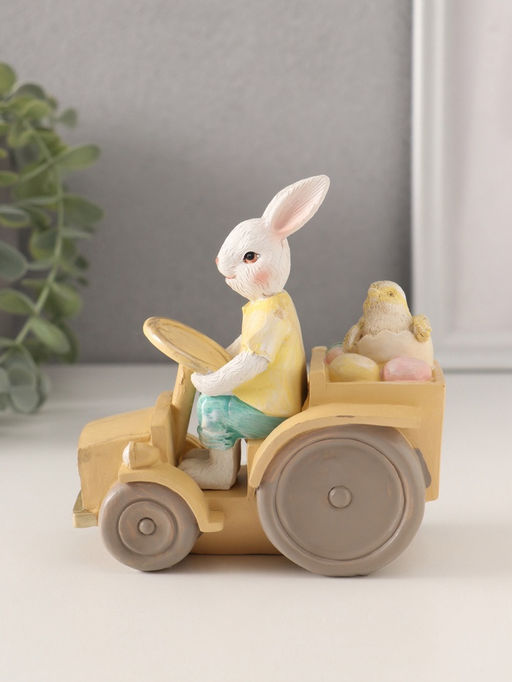 Представляем вашему вниманию уникальное произведение декоративного искусства, которое мгновенно привлечёт взгляд и подарит улыбку каждому, кто его увидит. Перед вами очаровательная скульптура, изображающая трудолюбивого зайца-тракториста, который вместе со своим маленьким другом цыплёнком перевозит яички в кузове своего трактора. Этот яркий и необычный декор станет настоящей изюминкой интерьера, добавляя ему нотку игривости и душевного тепла. Изделие выполнено из высококачественного полистоуна, материала, известного своей прочностью и способностью сохранять мельчайшие детали рельефа. Размеры 13x7.5x12 см делают его компактным, но при этом достаточно выразительным для того, чтобы стать центральным элементом на полке, столе или каминной полке. Разноцветное оформление придаёт фигуре особую живость и позволяет ей гармонично вписаться в любой интерьер. * Оригинальный дизайн: трогательный заяц-тракторист и его верный спутник цыплёнок создают атмосферу радости и весеннего настроения. * Высокое качество материалов: полистоун обеспечивает долговечность изделия и устойчивость к внешним воздействиям. * Универсальность применения: подходит для украшения дома, садового участка, а также может стать идеальным подарком для ценителей необычных вещей. * Лёгкость в уходе: поверхность фигурки легко очищается от пыли мягкой тканью, сохраняя свой первозданный вид. * Эмоциональная составляющая: изделие наполнено позитивной энергетикой и станет символом семейного счастья и благополучия. Выбор этой фигурки это возможность добавить в ваш дом частичку доброты и волшебства. Она не только украсит пространство, но и станет источником приятных эмоций, напоминая о важности заботы, дружбы и совместного труда. Пусть этот милый зайчик-тракторист станет частью вашего дома и принесёт радость всем, кто его увидит.