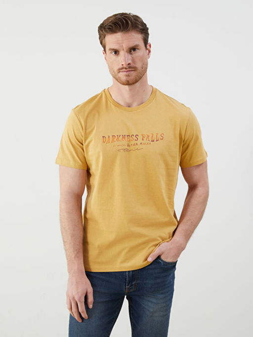 Bisiklet Yaka Bask?l? Penye Erkek Ti??rt