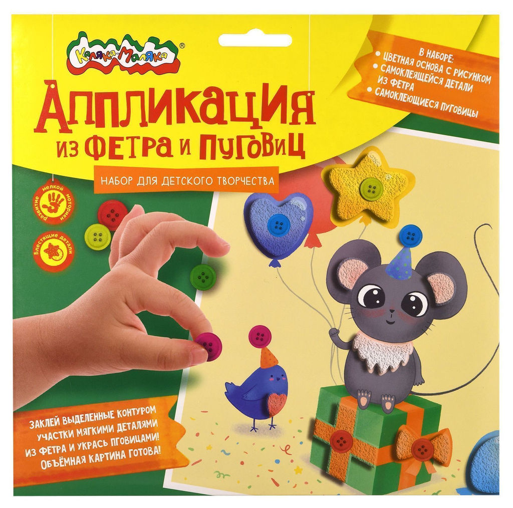 • Аппликация из фетра и пуговиц Каляка-Маляка ПРАЗДНИК У МЫШКИ 20х20 см 3+