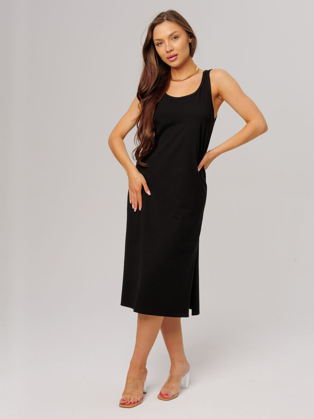 Трикотажная удлиненная туника с разрезами черная КТ-18 (7)