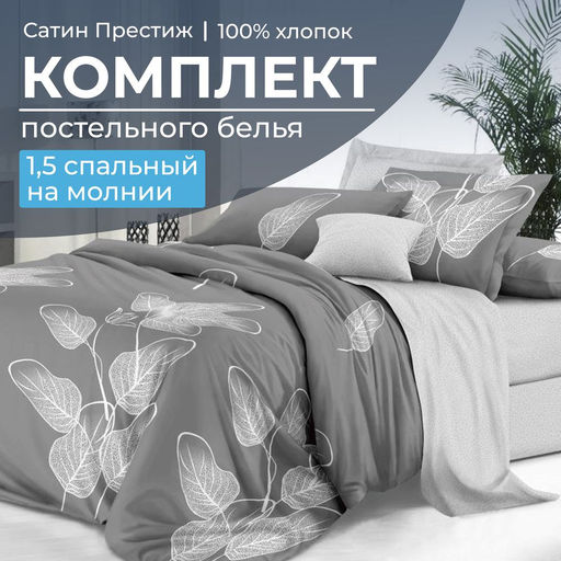 Подарите себе ощущение комфортного сна с нашим 1,5-спальным комплектом постельного белья из сатина "Престиж" плотностью ткани 115 г/м2. В комплекте: пододеяльник размером 150*215 см, который оснащен удобной потайной застежкой на молнии, простыня 150*220 см, две наволочки 70*70 см на молнии. Сатин представляет собой гладкое и блестящее полотно, похожее на шёлк, однако в составе ткани из сатина 100 % хлопок. Постельное белье из этой ткани надежное, плотное, износостойкое, гипоаллергенное, мало сминаемое, поэтому оно очень удобно в быту. Комплекты постельного белья из сатина «Престиж» - это выбор людей, которые ценят комфорт и выбирают качество. -- Характеристики -- Вес: 1700 кг Размерность комплекта: 1,5 спальный Комплектность: 1 пододеяльник, 1 простыня, 2 наволочки Количество предметов в комплекте: 4 Размерность пододеяльника: 1,5 спальный Размер пододеяльника: 150x215 Кол-во пододеяльников в комплекте: 1 Замок пододеяльника: На молнии Размерность простыни: 1,5-спальная Размер простыни: 150x220 Размер наволочки: 70x70 Замок наволочки: На молнии Кол-во наволочек в комплекте: 2 Ткань: Сатин "Престиж" Состав: 100 % хлопок Плотность: 115 г/м2 Плотность плетения: Высокая Режим стирки: При 40 градусах Цвет: Серый Расцветка: Шэдоу Вид принта: Листья Целевая аудитория: Взрослая