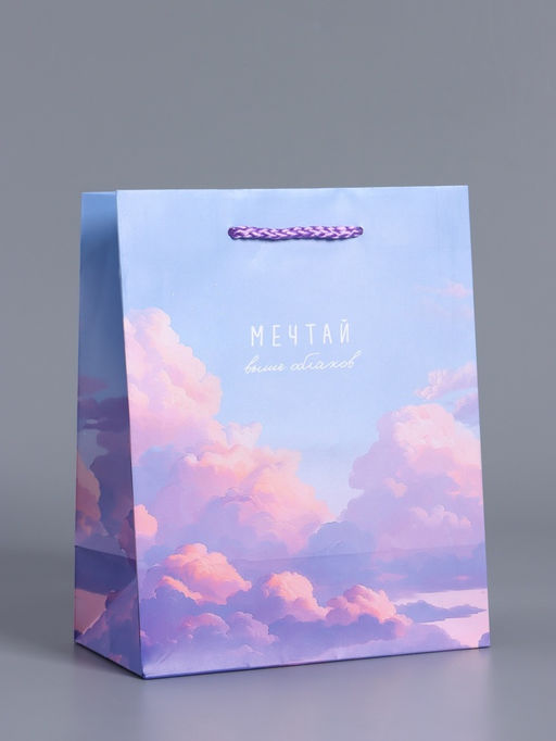 • Пакет подарочный ламинированный «Мечтай выше облаков», голубой с сиреневым, 18×22.3×10 см