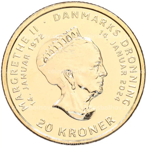 Монета 20 крон 2024 года Дания Отречение королевы Маргрете II от престола