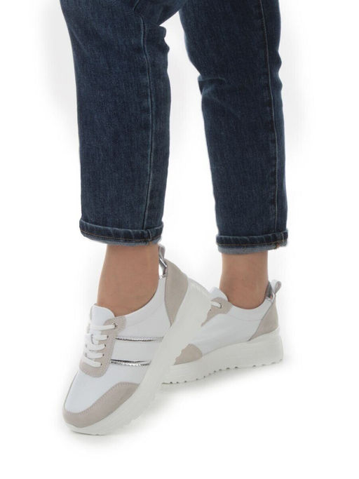 • 05-PDE40-2 WHITE/BEIGE Кроссовки женские (натуральная кожа, натуральная замша)