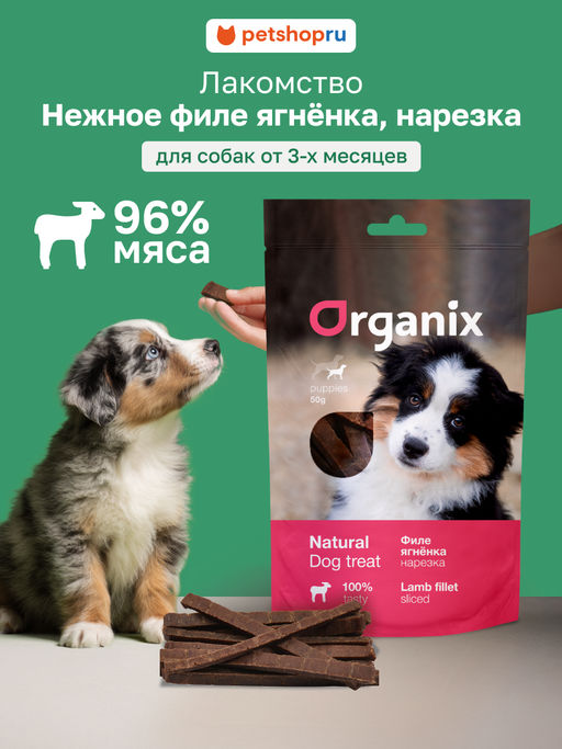 • Лакомство для щенков "Нарезка из филе ягненка" 100% мясо 02им22
