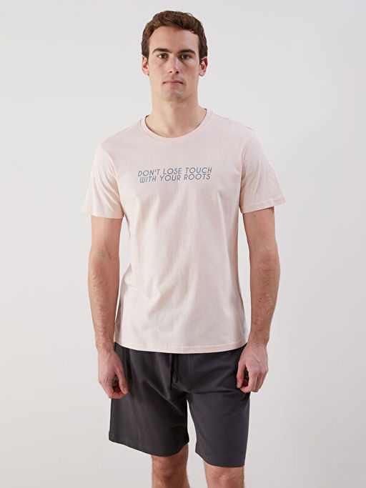 Bisiklet Yaka Bask?l? Penye Erkek Ti??rt