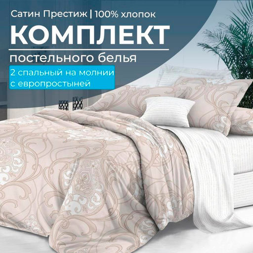 Артикул: Комплект постельного белья 2-спальный, сатин "Престиж", с Европростыней (Элегантность)
