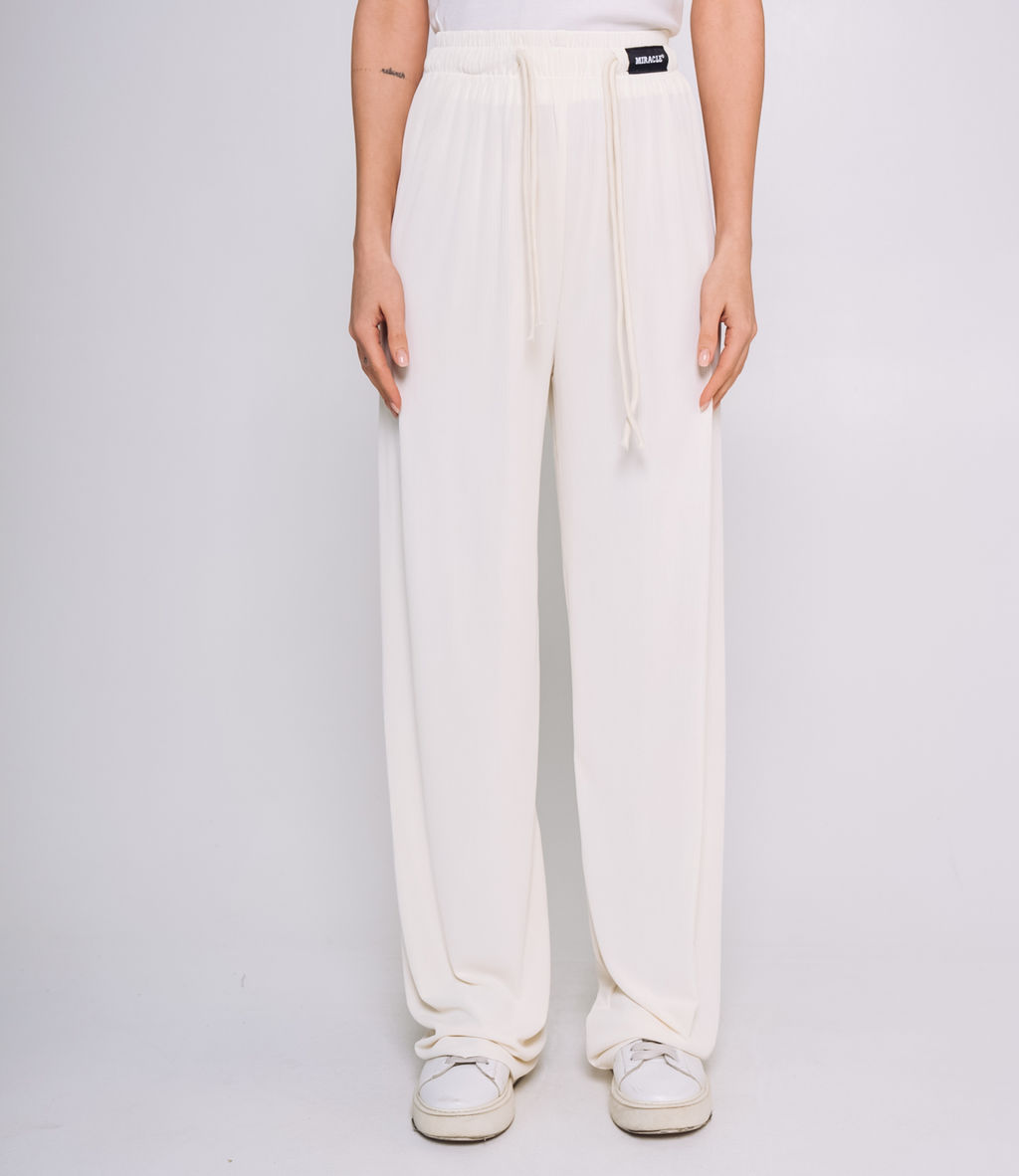 Широкие брюки с высокой посадкой и резинкой на талии, которые свободно облегают ноги, отлично подчеркнут достоинства фигуры и скроют ее недостатки. Рост модели: 164, параметры: 83-61-89.­