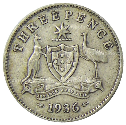 Монета 3 пенса 1936 года Австралия