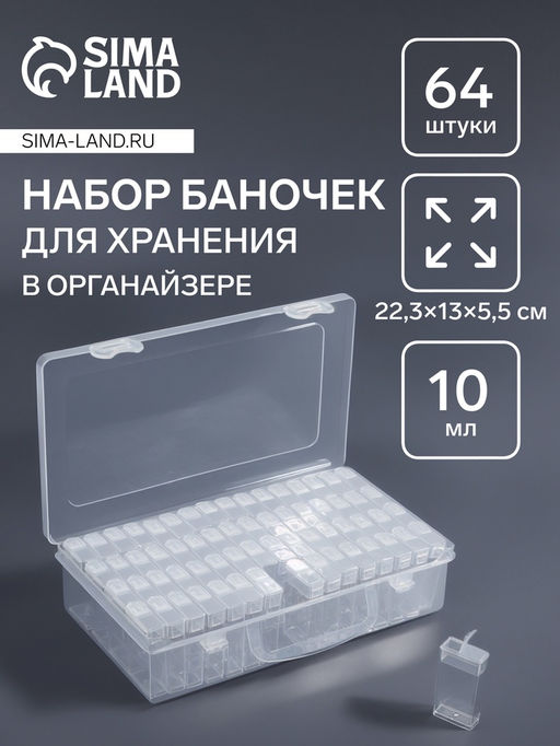 Набор контейнеров.Контейнер для хранения страз, бисера, маникюрных украшений, декора, мелких аксессуаров и прочих мелочей. Позволит организовать аккуратное хранение по цветам, размерам и видам.Благодаря рассортировке по ячейкам удастся держать материалы в одном месте и поддерживать порядок на рабочем столе. Поэтому контейнер точно оценят мастера маникюра и педикюра, визажисты, декораторы, рукодельницы и дети. Набор: Нет. Длина, см: 22.3. Ширина, см: 13. Высота, см: 5.5. Количество секций: 64. Вид упаковки: Пакет. Рисунок: Нет. Крышка: Да. Вид: Баночка. Вид: Баночка. Назначение: Для украшений. Назначение: Для домашних мелочей. Назначение: Для рукоделия. Назначение: Для декора. Особенности: Закрытый. Бесплатная доставка: Да. Размеры товара: 13/3.5/22.3. Примечание: Размеры изделия (длина, ширина) могут незначительно отличаться от указанных (+/- 5 мм)..