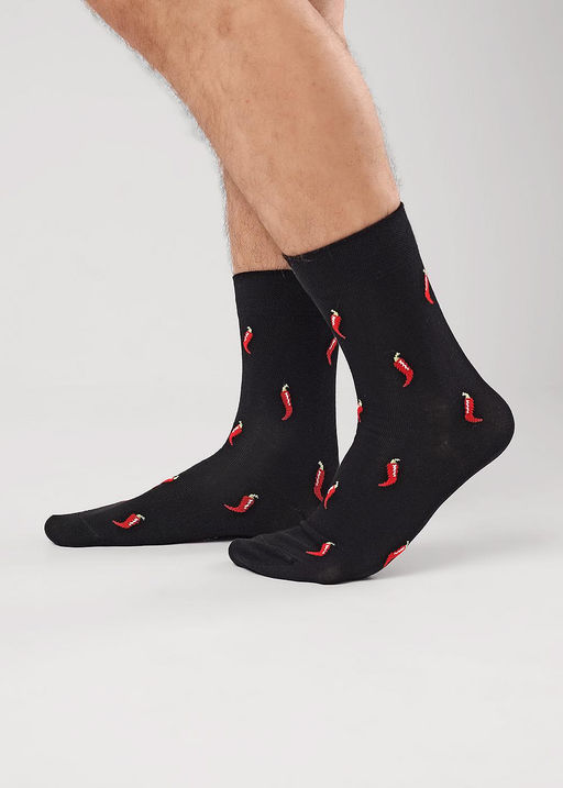 Мужские носки с рисунком "перец". Выполнены из хлопкового полотна с добавлением полиамида и эластана. Прочная и эластичная ткань приятна для тела, прекрасно пропускает воздух, не электризуется и подходит для чувствительной кожи. Добавка эластана в мужские носки придает им эластичность и гарантирует, что они не потеряют цвет даже после множества стирок. Мягкие удобные носки отлично подходят для повседневного использования, занятий спортом и активного отдыха. Состав: 70% хлопок, 25% полиамид, 5% ПУ(эластан)