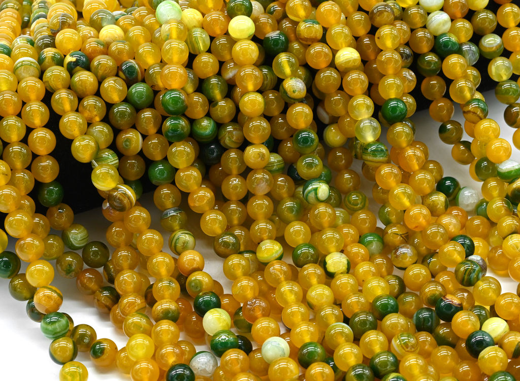 • Бусины из агата тонированного шарик 8мм цв.желто-зеленый, 39см, 48 бусин Радуга камня