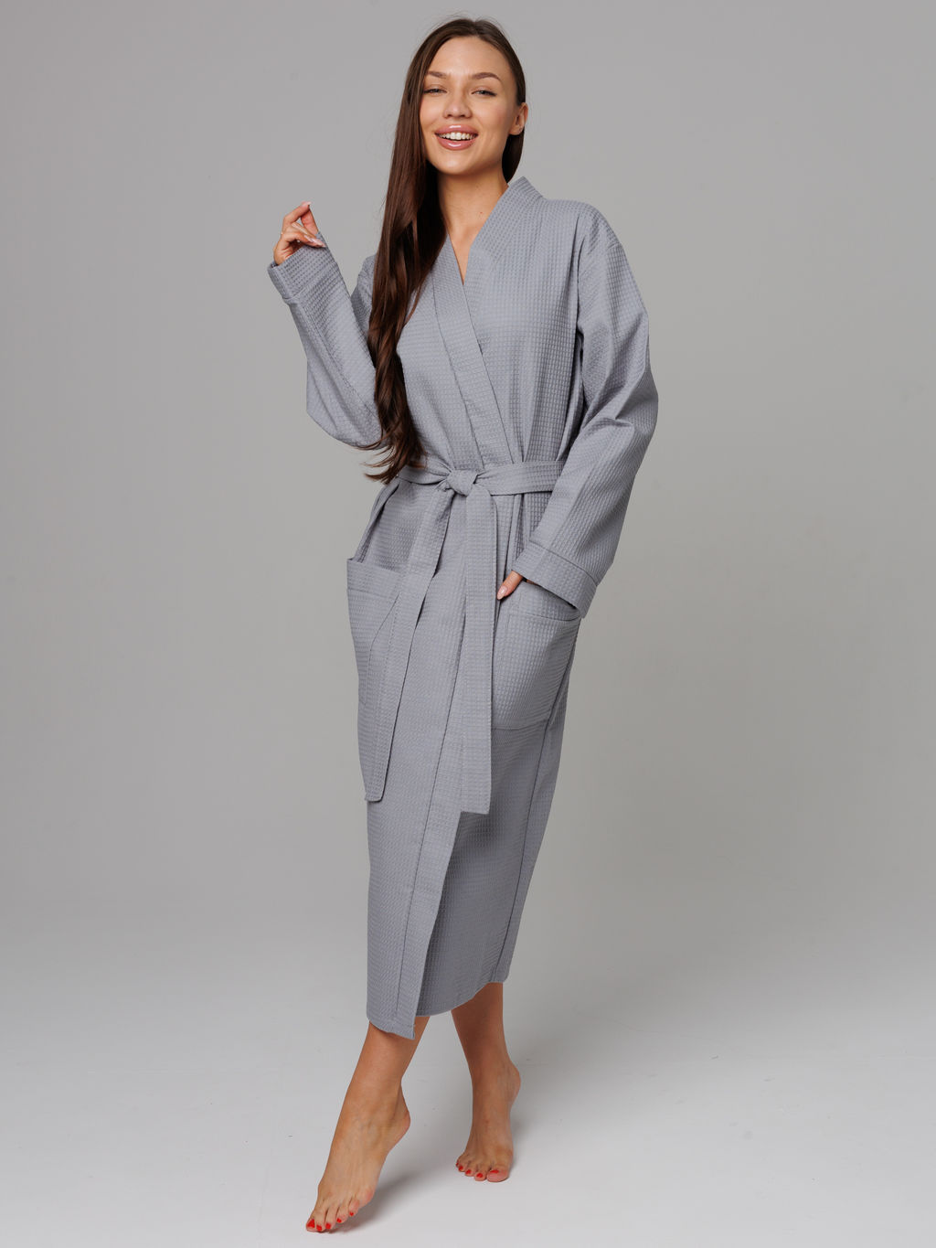 • Женский вафельный халат с планкой серый В-02 (20)