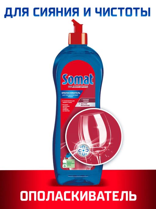 - Средство Сомат придает посуде сияющий блеск. Не имеет значения, из какого материала она сделана. Стекло, фаянс, пищевая сталь, силиконовые покрытия с ополаскивателем Сомат посуда будет сиять чистотой.