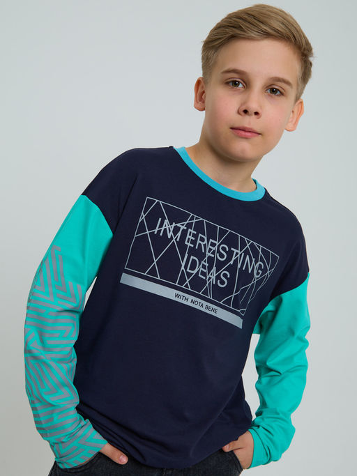 Лонгслив прямого силуэта для мальчика. На полочке и рукаве принт. Рукав втачной, длинный. Горловина обработана планкой. Состав:92% хлопок, 8% лайкра
