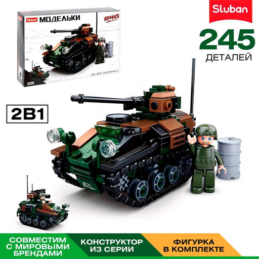• Конструктор Модельки Sluban «Танк», 2 варианта сборки, 245 деталей