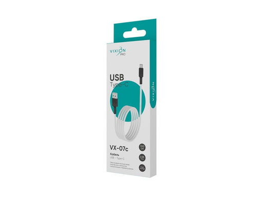 • Кабель Type-C - USB, 1 м, "Vixion VX-07c" (GS-00028521) белый, 2.4А, усиленный