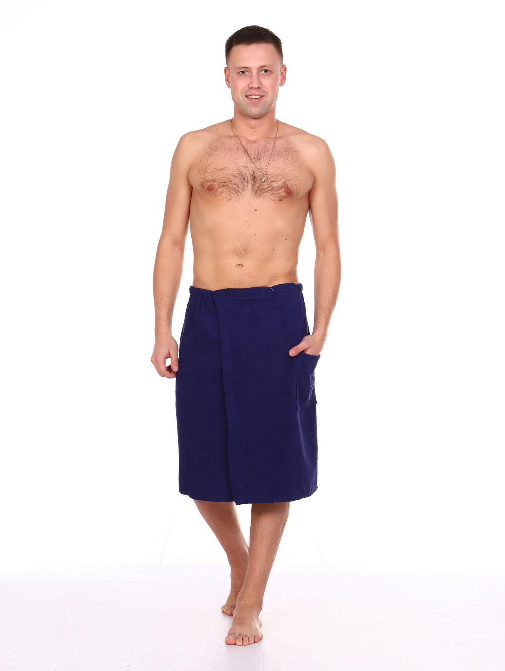 Килт мужской махровый для бани и сауны очень удобен в использовании: он легко надевается и быстро застегивается на липучку. Лёгкий килт изготовлен из 100% хлопка, что позволяет телу дышать, материал мягкий и приятный. Плотность махрового полотна 300 г/кв.м. Банное полотенце на липучке отлично впитывает влагу и быстро высыхает. Килт мужской махровый банный прекрасно заменяет огромные неудобные полотенца, которые постоянно спадают. Универсальный размер килта мужского махрового 64 см на 142 см подойдет на любой рост и фигуру до 54-56 размера. Имеется удобный вместительный карман. Полотенце махровое мужское на липучке удобно брать с собой в баню, сауну, бассейн, на отдых на море или речку. Так же килт банный мужской отлично подойдет для домашнего использования. Килт мужской банный махровый будет полезным и практичным подарком на новый год, день рождения, 14 февраля, 23 февраля день защитника отечества и на любой другой праздник папе, дедушке, брату, другу. -- Характеристики -- Вес: 460 кг Ткань: Махровая Состав: 100 % хлопок Отделка: Декоративная лента Режим стирки: При 40 градусах Цвет: Темно-синий Расцветка: Темно-синий Вид принта: Однотонный Целевая аудитория: Взрослая