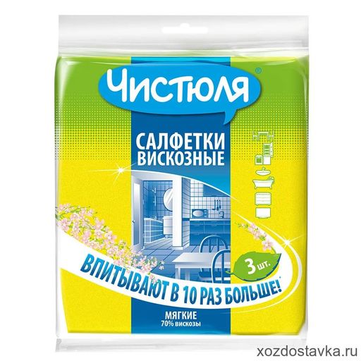 Внешний вид товара может отличаться от фотографий на сайте. ЧИСТЮЛЯ салфетки вискозные ( 3шт) 34х38см