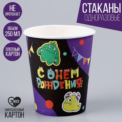 • Цена за 10 шт. Стакан одноразовый бумажный "Монстрики", 250мл
