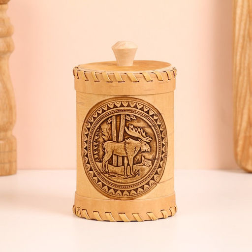 • Туес «Лось», банка для хранения, 8×8×14 см, береста
