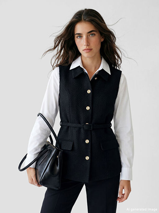G?mlek Yaka Kad?n T?vit Klasik Yelek