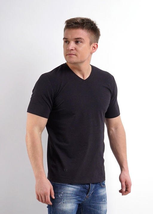 Фуфайка базовой посадки, v-образный вырез горловины, короткий рукав. 92% хлопок, 8% эластан. Плотность 180-190г/м2