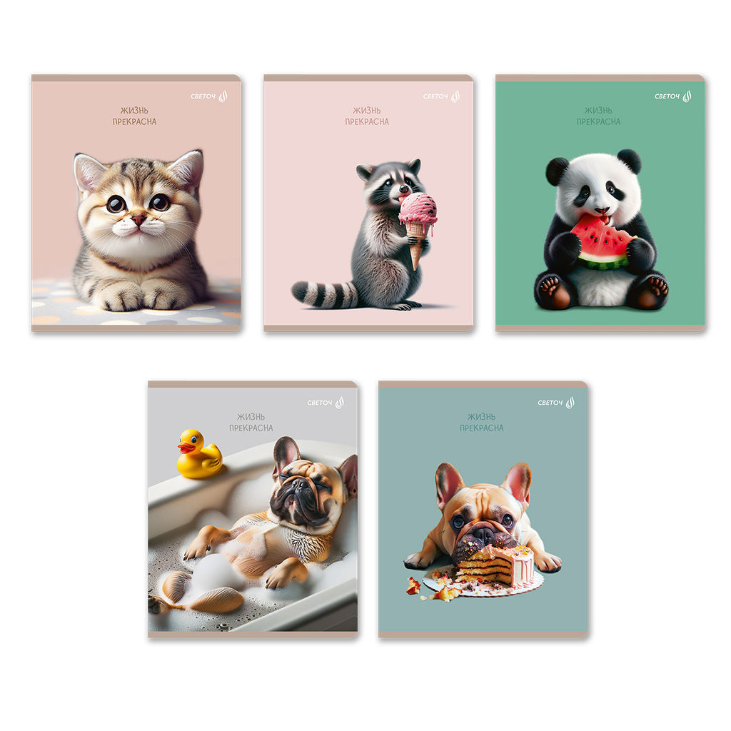 Тетрадь общая А5 формата, 80 листов предназначена для учащихся средних и старших классов, учащихся вузов, а так же прекрасно подойдет для дома и офиса. Внутренний блок изготовлен из качественной офсетной бумаги плотностью 65 г/кв. м, 100% белизны, обложка из мелованного картона плотностью 190 г/кв. м. Дизайн обложки дополнен спецэффектом в виде сплошного лака. Линовка - клетка, красные поля. Вид скрепления - скоба. Тетради упакованы в термоусадочную пленку по 5 штук (ассорти). В коробе находится 8 упаковок, 40 шт. Внимание! В оптовой упаковке возможен повтор дизайна. Сертификат или декларация соответствия -- Характеристики -- Мин. кол-во для заказа: 5 Кратность: 5 Артикул: Т203 Белизна внутр. блока: 100 Вес единицы продажи (кг): 0.860 Вес отгрузочной упаковки, г: 860 Вид линовки: клетка Вид отделки: сплошной лак Вид скрепления: на скобе Вид тетради: общая Габариты отгрузочной упаковки, см: 21*16.6*4.2 Количество в транспортной упаковке: 8 Количество листов: 80 Количество, шт: 5 Марка: "Светоч" Материал обложки: мелованный картон Наличие полей: Да Объем единицы продажи, л: 1.46 Однотонный цвет обложки: Нет Плотность внутреннего блока, г/кв.м: 65 Рекомендуемый возраст: от 6 лет Справочная информация: нет Страна происхождения: Россия Тип обложки: мягкая Тип товара: Тетрадь Тип упаковки: без упаковки Тип упаковки опт.ед.: в термоусадочной пленке Формат: A5 Цвет бумаги (блока): белый Артикул наименования: 01527 Праздник: 1 сентября - День знаний Тема рисунка: Животные, Однотонные, Юмор