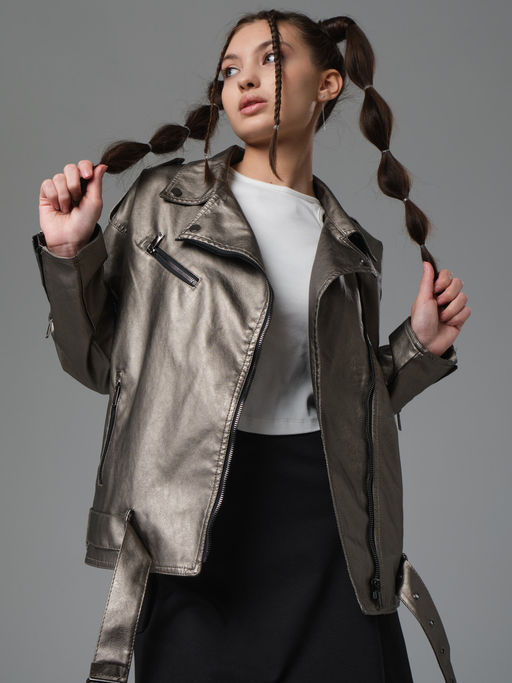 Стильная куртка-косуха в стиле рок со скошенной застежкой-молнией на подкладе без утеплителя из эластичной нешуршащей стойкой к истиранию ткани с отложным воротником. Воротник украшен стильными кнопками, по плечам погоны фиксируются на кнопки. Куртка имеет три удобных прорезных кармана застегивающихся на молнию. По низу изделия регулируемый съемный пояс фиксируется на хлястики. По низу рукава втачная застежка-молния. Подходит для теплой весенней погоды, устойчива к попаданию влаги. Вся наша продукция сертифицирована и соответствует высочайшим стандартам качества, наша компания является участником программы "Бережливое производство" Состав:верх: 45% полиуретан, 55% п/э, подклад- 100% п/э
