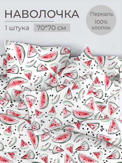 Артикул: Наволочка 70*70 см, перкаль, детская расцветка (Арбузики)