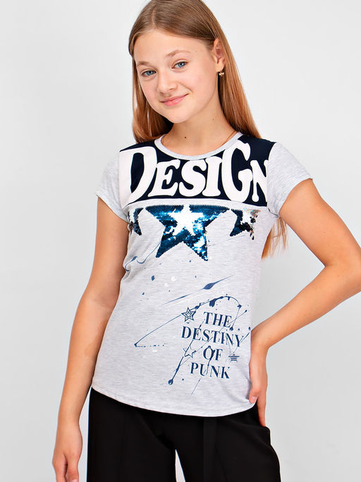 Легкая подростковая футболка для девочки. Модель декорирована двухсторонними пайетками.