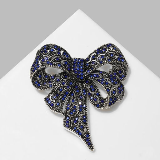 • Брошь «Бант» узорчатый, цвет бело-синий в чернёном серебре МИКС