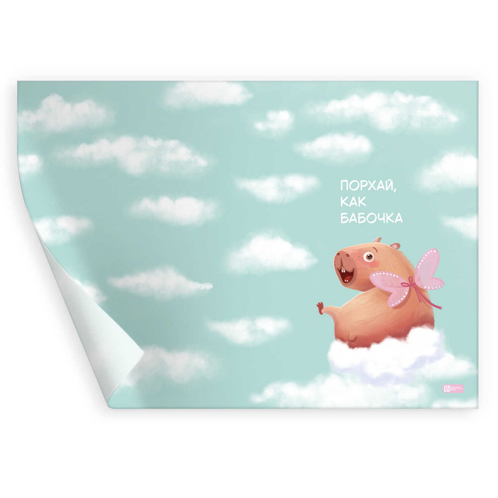 Плёнка цветная для школьных уроков труда арт.72995/ 200 КАПИБАРА-МИЛАШКА (50х70 см, голубой, ПВХ плотностью 130 мкм, ПЭТ-пакет с европодвесом)