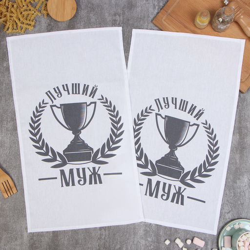 Кухонный набор полотенец Доляна. Лучший муж, 36?60 см, 2 шт., 100% хлопок, 160 г/м?