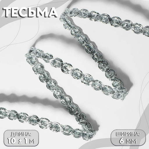 • Тесьма декоративная, 6 мм, 10±1 м, цвет серебряный