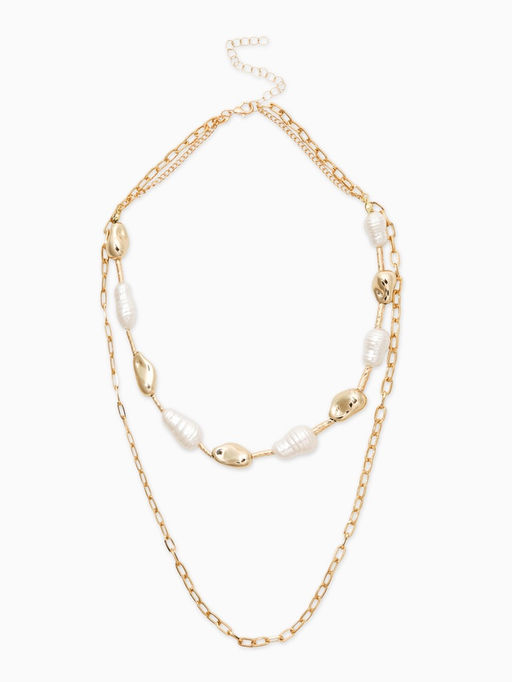 • Колье "Жемчуг" борокко, цепь, удлиненное, 2 яруса, цвет белый в золоте