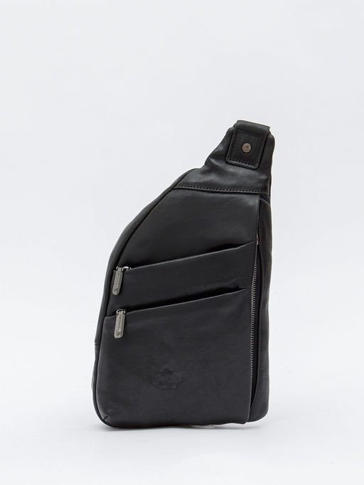 Мужской рюкзак, выполнен из натуральной кожи. Дополнен темной серебристой фурнитурой. Данная модель закрывается на молнию, носится на одном плече. Каркас полужесткий. Встроенный ремень перестегивается.