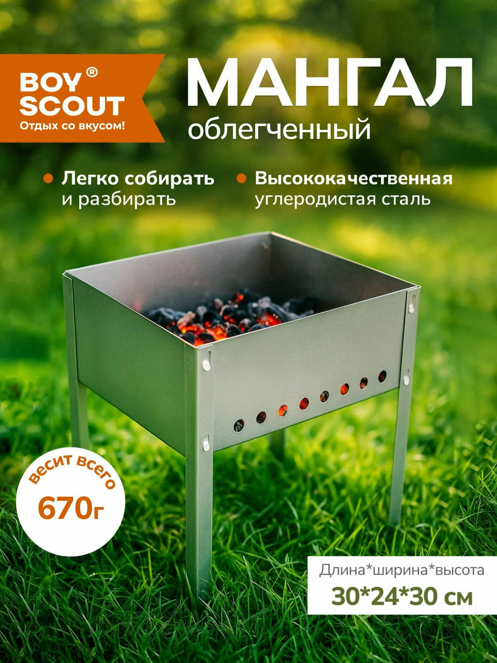 • Мангал облегченный для туризма 30*24*30см сборный без шампуров в коробке BOYSCOUT 61637