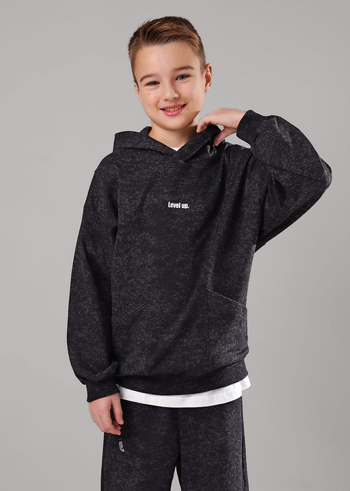 Худи для стильного свободолюбивого подростка. Модель с фигурными резами спереди и сзади дополнена трендовым принтом. Комфортная оверсайз посадка, капюшон, удобные карманы, манжеты и пояс из кашкорсе- все что нужно для активной жизни подростка! 95% Хлопок, 5% ПУ(эластан)